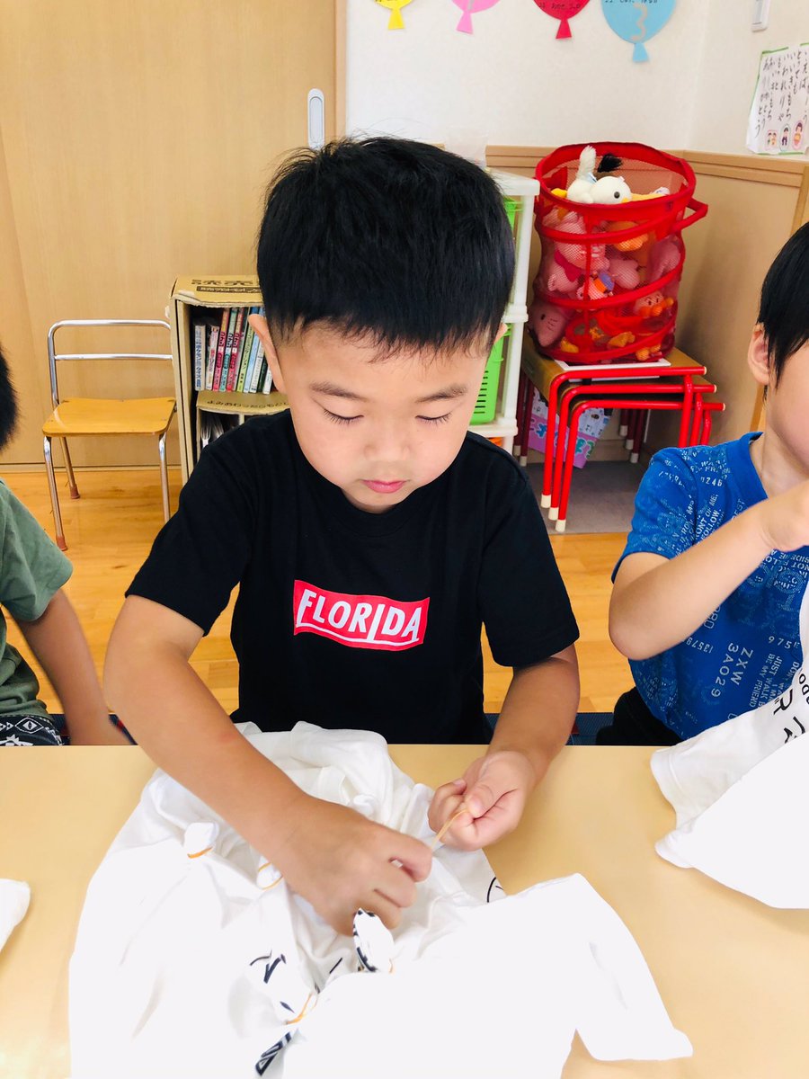 9月11日 金 プラス ドゥ 元気っ子 絞り染め ながさわ保育園